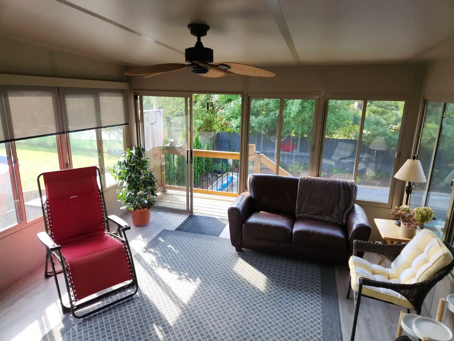 Take your sunroom’s comfort to the next level with ThermaDeck, Sunspace’s innovative insulated flooring system. Designed for superior thermal efficiency, it provides up to 25% better insulation compared to traditional flooring, keeping your space warmer while reducing energy costs. Perfect for extending your 3-season sunroom into cooler months or pairing with a insulated sunroom design for maximum comfort.