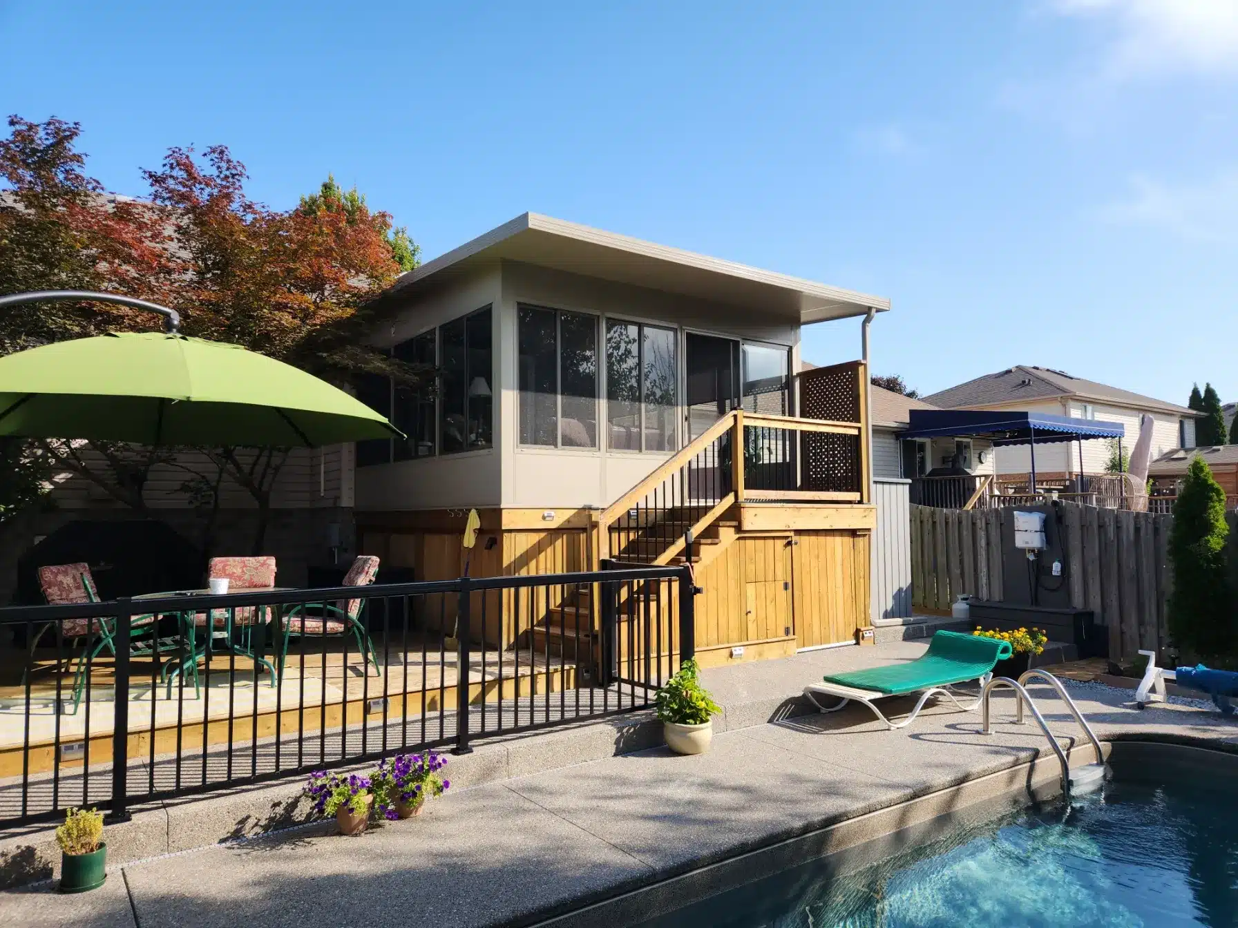 Customize your space with a range of roof options, including cathedral ceilings or sleek studio designs, ideal for decks, porches, or even a carport. Whether you want a cozy retreat or an open, airy extension of your home, the Model 300 blends style and practicality seamlessly.