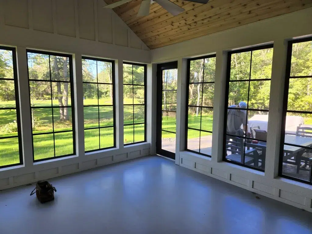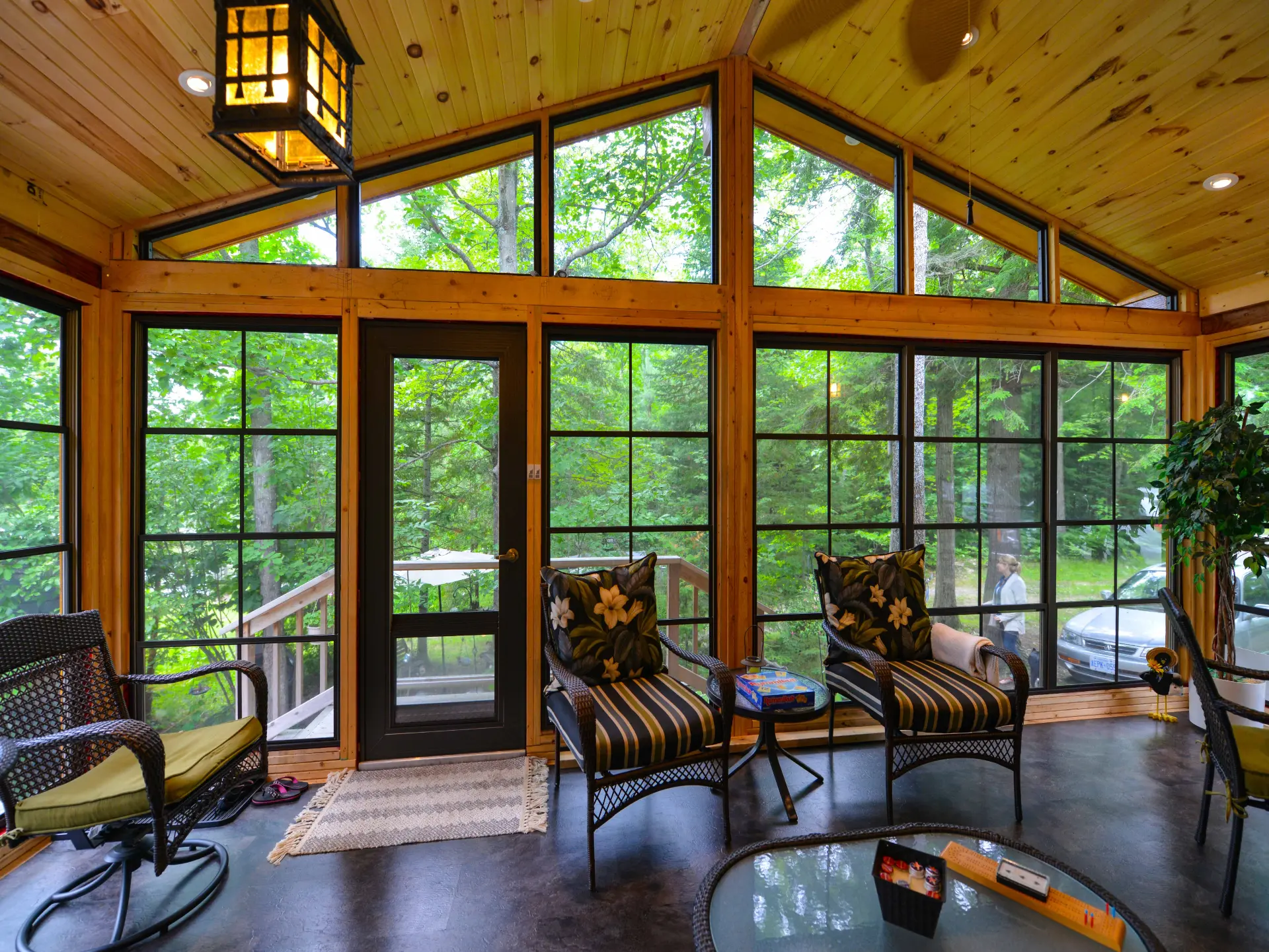 The Sunspace Vertical 4 Track Entry Door is designed for use in sunrooms and porch enclosures. It follows the same design concept as the Weathermaster™ window system and is fully customizable. From the size and style of the window panels to the height of the lower wall section, every detail can be tailored to fit your space. This entry door blends seamlessly with the overall structure, enhancing both the appearance and practicality of your sunroom or enclosed porch.